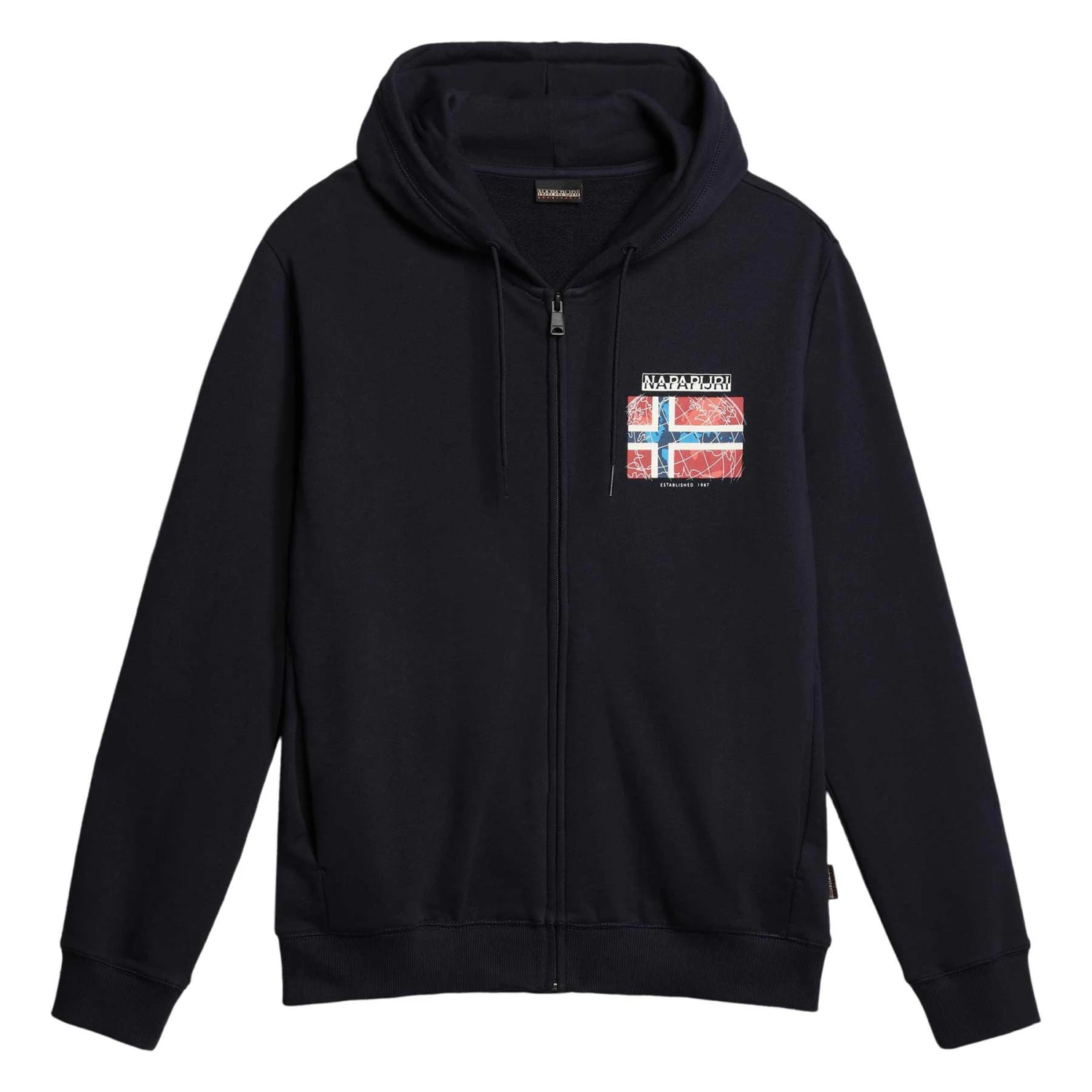 Die Napapijri Guiro Full Zip Kapuzenjacke ist mit der norwegischen Flagge und dem Napapijri Geographic Logo auf der Brust verziert, eine Anspielung auf die schönen Landschaften und den Entdeckergeist Norwegens, ein Ort, der Napapijri viele Ideen geliefert hat. Mit durchgehendem Reißverschluss, Seitentaschen zum Verstauen und einer verstellbaren Kapuze ist es ein ideales Oberteil für kühlere Frühlings- und Sommertage.